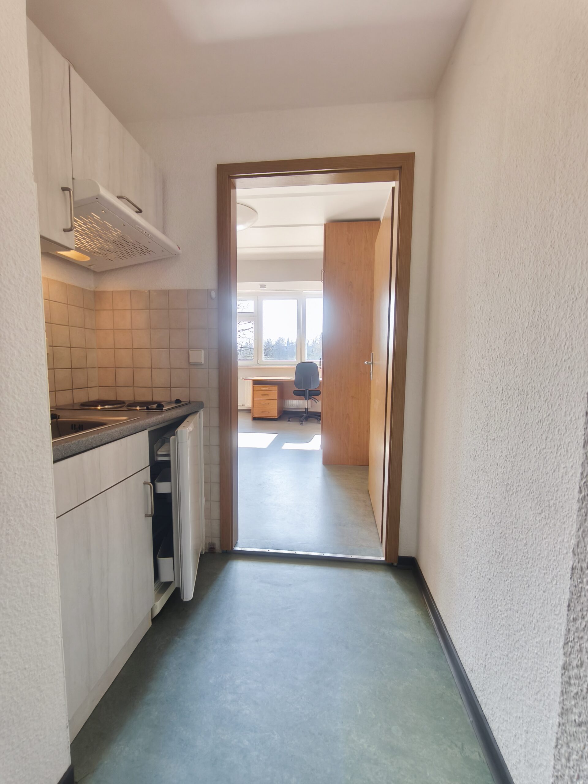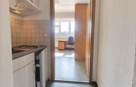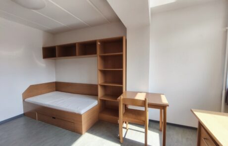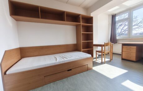The Agricolastraße 14/16 residential complex is located on campus directly next to the canteen and the university library. The two interconnected buildings house the administration of the student union as well as rooms and flats for 503 student tenants.